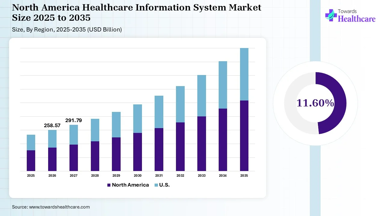 The healthcare information system market is driven by the transition towards digital-first medical environments and value-based care. The healthcare information system encompasses systems, digital platforms, and software used for the management of healthcare data, hospital operations, patient records, and billing practices. These systems reduce administrative burden and medical errors, making healthcare faster, data-driven, more efficient, and safer.